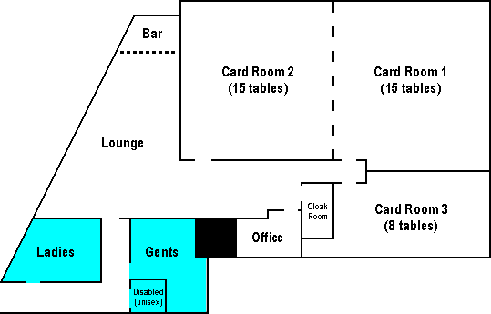 The floor plan of our building is below. The entrance door is at the bottom left, and WCs are shown with a blue background.